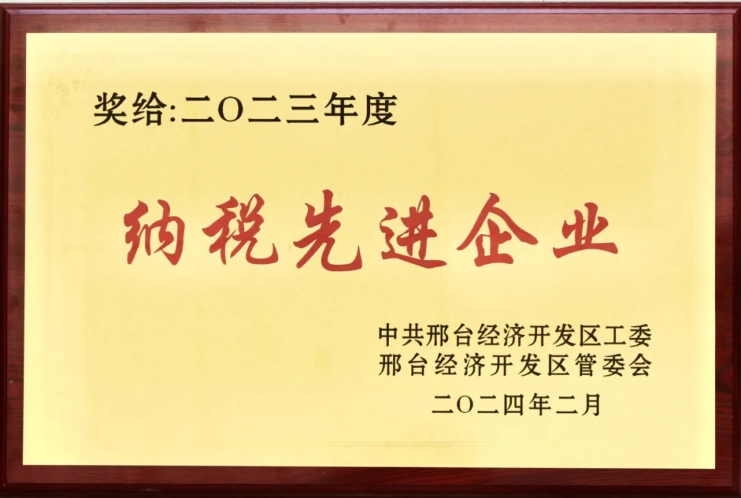 近日,國金藥業榮獲中共邢臺經濟開發區工委、邢臺經濟開發區管委會授予“2023年度納稅先進企業”稱號。