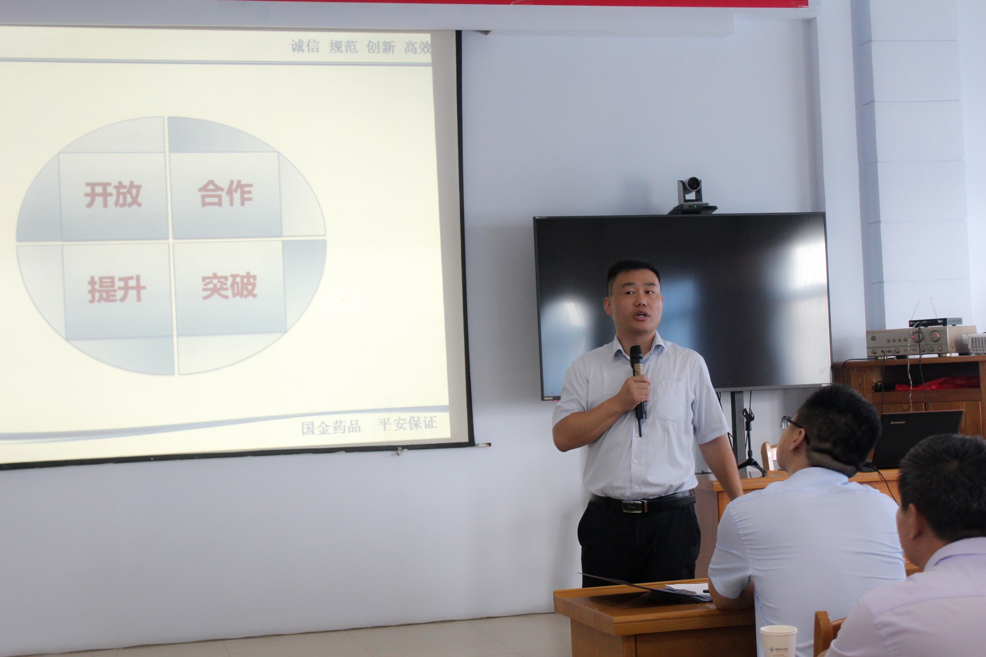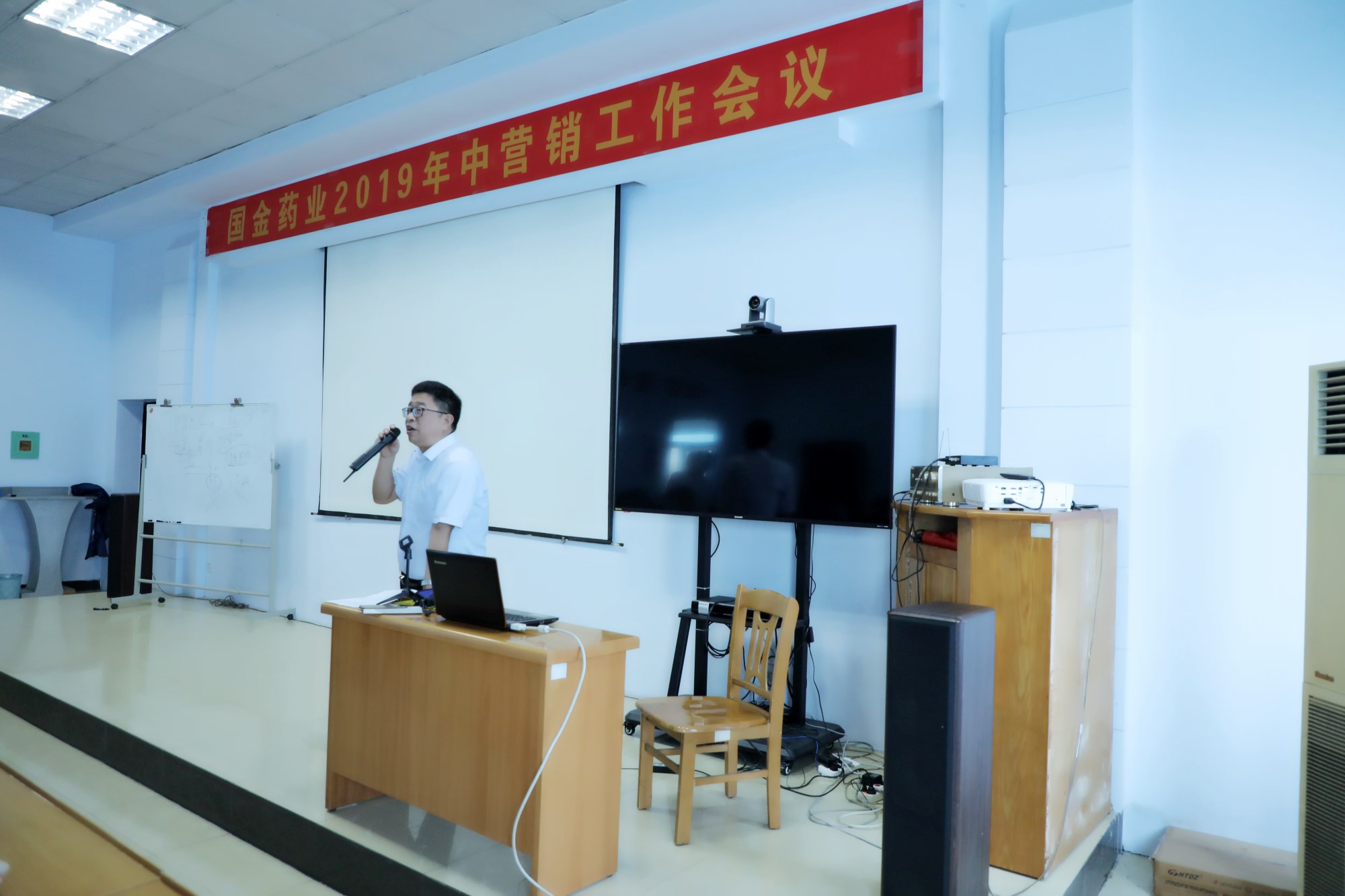 8月3日,國金藥業2019年中營銷工作會議在公司第三會議室拉開序幕,公司董事長、總經理張四巖出席會議并作了重要講話。公司各銷售部負責人李風雷、祝良國、郝增坡、李連保、張正峰、李保以及全國各地的主管以上人員共計100余人參加了會議,為期三天。
